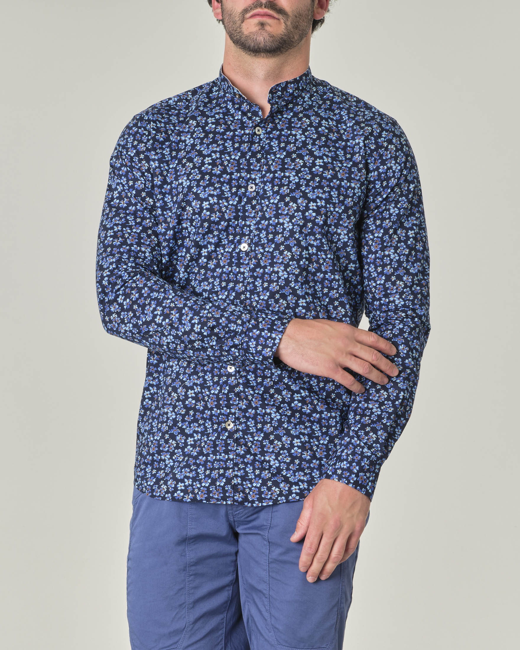Camicia coreana cheap blu uomo